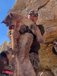 Our lion hunt begins by driving roads checking for tracks in the early morning hours before sunrise. We usually have 3 to 5 4X4 trucks checking roads, so it typically doesn't take long to find a track. Once a track is located, the hounds are released after sunrise. If you've never experienced this, you are in for an extreme adrenaline rush. There is nothing like the enthusiasm and excitement that comes from a well trained pack of Lion hounds trailing a Lion. We then follow the hounds until they tree or hold the Lion at bay. Once at the tree, you will have the opportunity to harvest one of the most elusive predators of North America.